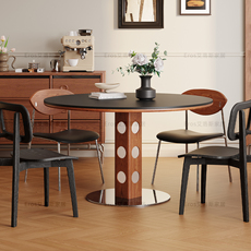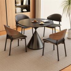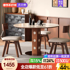 现代简约餐桌实木餐桌维亚圆桌家用小户型中古洞石岩板桌椅组合