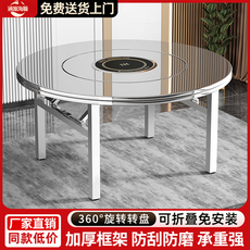 加厚304不锈钢可折叠火锅桌电磁炉彩图圆桌家用商用餐桌转盘桌子