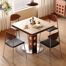 实木岩板商用小吃面馆奶茶食堂咖啡厅麻辣烫餐桌烧烤饭店快餐桌椅