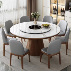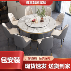 进口岩板圆餐桌转盘底座圆形餐桌圆桌家用旋转大理石桌带转盘家用