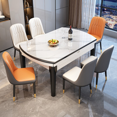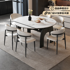 意式极简可伸缩岩板餐桌椅组合现代简约家用方变圆形两用吃饭桌子