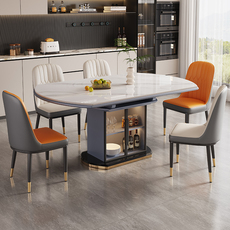岩板餐桌家用小户型2025新款可变圆桌轻奢现代简约储物电磁炉饭桌