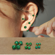 双面绿色耳蜗耳骨钉女2022新款潮高级感螺丝拧钻球耳环男耳饰耳钉
