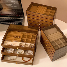 复古胡桃木首饰盒桌面抽屉式耳环耳钉戒指收纳盒高级感黄金珠宝盒