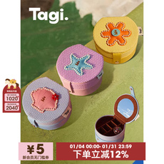 Tagi.钉珠想象星星小花贝壳便携鼓鼓珍珠双层圆圆首饰盒收纳盒