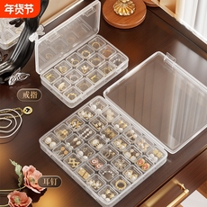 首饰盒收纳盒耳钉耳环戒指分格盒透明珠子桌面零件黄金整理102030