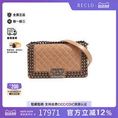 中古Chanel香奈儿女包A级95新Boy 28牛皮斜挎包棕色reclo正品