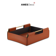 爱美仕样板房衣柜皮革收纳托盘女性复古单层桌面香水化妆品收纳架