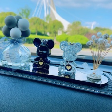 汽车载网红中控台仪表盘香水瓶摆件饰品羽毛毛镶钻防滑垫子