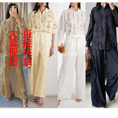 新款 2025套装澳洲设计感重工拼接蕾丝刺绣花边衬衫+阔腿长款