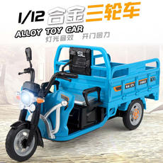 新款彩利信1:12电动三轮车合金模型仿真三蹦子农用快递送货车玩具