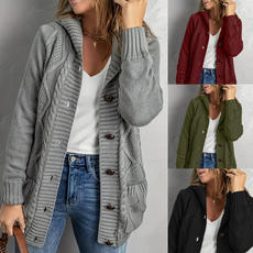 欧美亚马逊wish速卖通外贸大码女装eaby针织长袖纯色连帽开衫