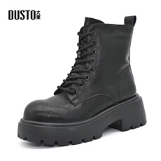 达芙妮厚底黑色马丁靴女2025新款秋季英伦风复古百搭休闲系带短靴