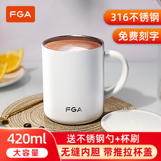 富光保温马克杯带盖勺316L不锈钢办公室咖啡杯男女泡茶水杯子家用