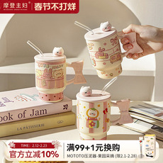 小清新ins网红款陶瓷马克杯大容量带盖勺可爱水杯子少女办公室用