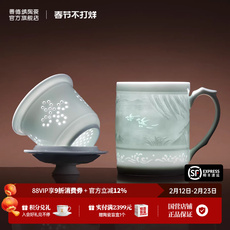 景德镇官方陶瓷影青雕刻办公杯高档水杯马克杯茶漏杯送礼礼盒装