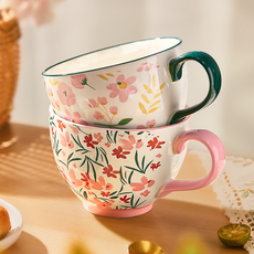 舍里法式花卉马克杯家用早餐杯办公室喝水杯子女牛奶咖啡杯伴手礼