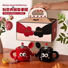 手牵手马克杯情侣对杯勺高级感陶瓷水杯家用喝水杯子订婚新婚礼物
