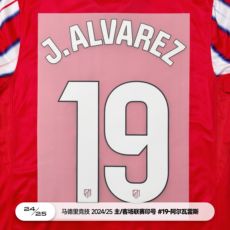 马德里竞技 2024/25 主客场球衣印号 联赛字 阿尔瓦雷斯 西甲马竞