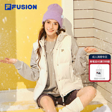 FILA FUSION斐乐潮牌女子羽绒马甲2025冬新款时尚休闲连帽外套