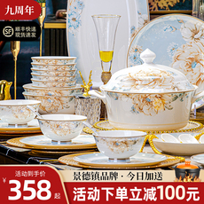 碗碟套装家用景德镇骨瓷餐具轻奢高级感碗碟高档礼盒欧式碗盘组合