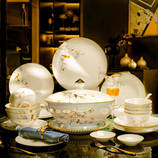 出口骨瓷碗碟套装家用餐具中式清新轻奢饭碗面碗高档餐盘菜盘乔迁