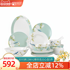 华光国瓷 骨瓷餐具套装碗碟套装中式家用碗盘碟餐具套装礼盒 青亭