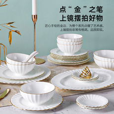 碗碟套装家用欧式金边创意碗盘组合骨瓷餐具套装碗盘家用自由组合