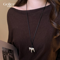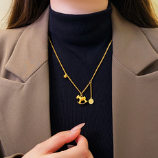 马年小马吊坠项链女秋冬毛衣链大气高档高级感轻奢小众沙金配饰品