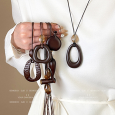 复古长款棕色圆环吊坠项链女毛衣链大气高档高级感秋冬衣服配饰品