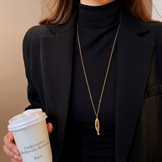 金色咸鱼翻身吊坠项链女2025新款秋冬长毛衣链大气高档高级感配饰