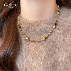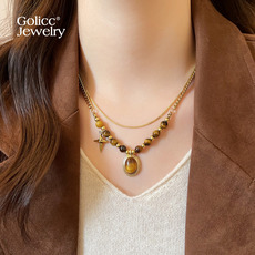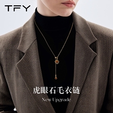 金色虎眼石叠戴项链女轻奢小众毛衣链大气高档高级感2025新款配饰