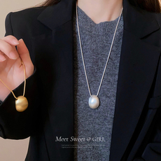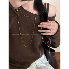 秋冬仿珍珠项链大气高档高级感蛇骨链金色抽拉气质长款轻奢毛衣链