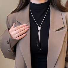 闪锆仿珍珠高档毛衣链女潮长款项链网红百搭简约流苏秋冬时尚配饰