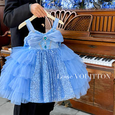 绝美女童爱莎公主裙子夏装冰雪奇缘艾莎亮片连衣裙宝宝礼服蓬蓬裙