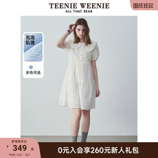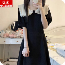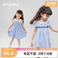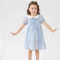 巧比童裙子童装新款夏装娃娃领女童压褶A字小童连衣裙儿童长裙