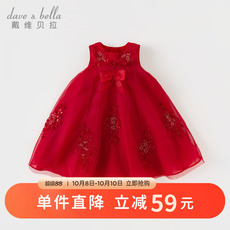 【高定礼服】戴维贝拉女童连衣裙夏装红色气质公主裙儿童生日裙子