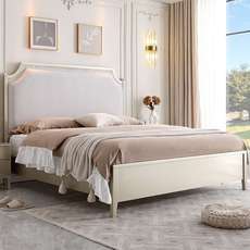 美式实木床轻奢1.8米主卧双人大A床1.5软包床田园复古高箱储物婚