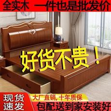 中式实木床1.8米双人床主卧婚床1.5m1.2米单人床气压高箱储物