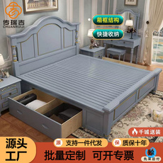 现代简约复古法式实木床主卧1.5米1.8双人床美式轻奢高箱储物婚床