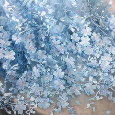 加密浅蓝粉色立体绣花花朵蕾丝布料高级定制礼服连衣裙网纱布料
