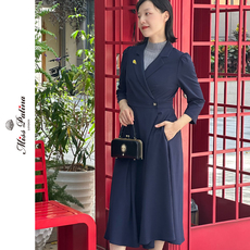 [高级定制]LIANGNUO靓诺冬款蓝色绣花连衣裙高端奢华裙子LL19412A