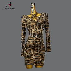 2025新款豹纹高级拉丁舞比赛服装专业黑池舞蹈花服艺考连衣裙定制