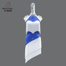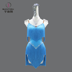 2025新款湖蓝色拉丁舞流苏连衣裙舞蹈表演出服装专业高级定制花服