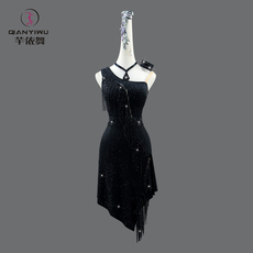 2025新款拉丁舞连衣裙高级舞蹈赛服演出花服流苏舞裙黑池性感定制