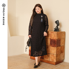 颈袖添香2024秋冬新款蕾丝连衣裙女装修身高级轻奢定制颜色连衣裙