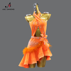 2025新款专业羽毛拉丁舞服比赛演出高级感舞蹈花服14岁定制连衣裙