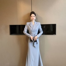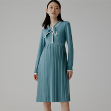SELLYNEAR高级感孕妇秋冬装新款定制梦幻蓝毛织时尚可哺乳连衣裙