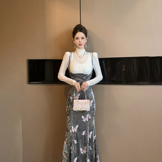 香妮芬高级定制优雅平时可穿婚庆宴会装2025新秋季气质长款连衣裙
