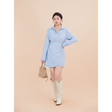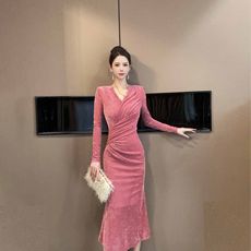 意大利进口微弹细褶料 QIAOUNCHY俏云曦|高级定制粉色收腰连衣裙